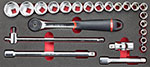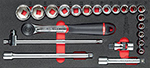 | N90243 0025 | -,-- | | L | 1 Cricchetto IP51 da 1/2" (cod. N10344) 18 Chiavi a bussola esagonale da 1/2" 8-10-11-12-13-14-15-16-17-18-19-21-22-23-24-27-30-32 mm (cod. N10205) 1 Leva a T attacco quadro da 1/2" (cod. N10241) 2 Prolunghe da 1/2" 125-250 mm (cod. N10245) 1 Snodo cardanico da 1/2" (cod. N10250) |  |